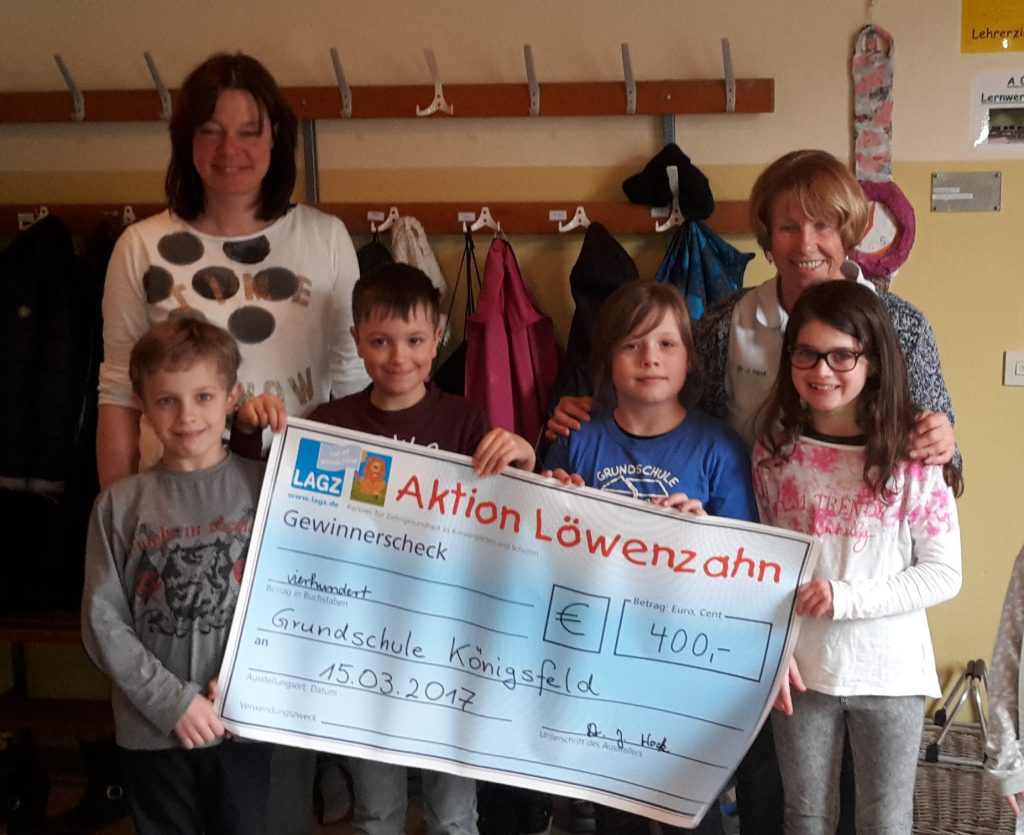 Frau Dr. Hock überreichte unserer Schule für den 1. Platz bei der Aktion Löwenzahn einen Scheck über 400,- Euro.